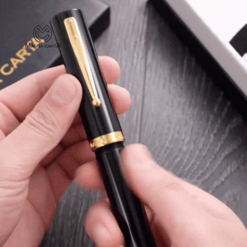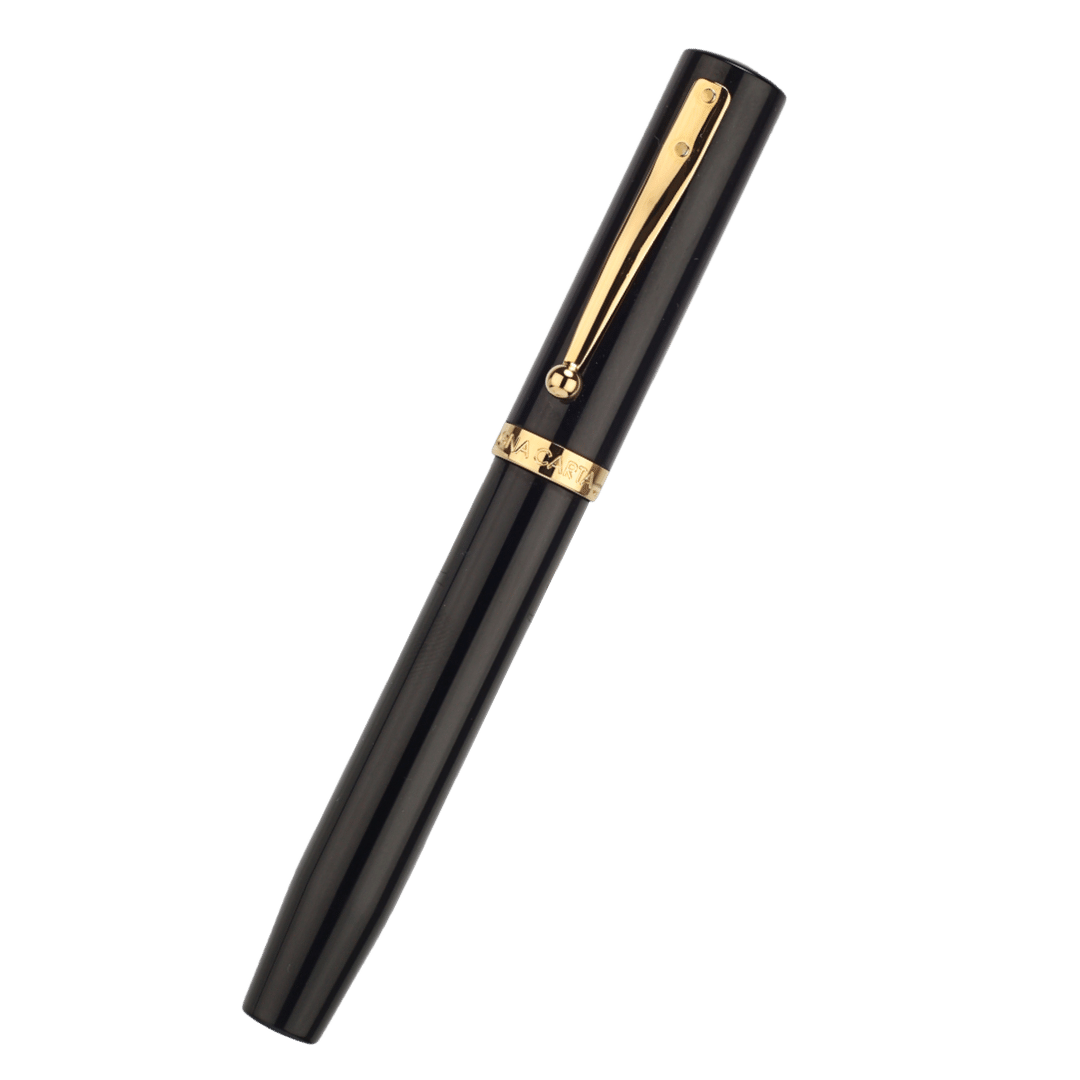 Experience the extravagance of writing with the Mag 1000 luxury fountain pen. Crafted from Ebonite (Nikko) with 24K PVD gold plating detailing, the Mag 1000 has a timeless and sophisticated design. A no. 10 nib by Magna Carta ensures an effortless writing experience, available in Fine, Medium, and Broad. This premium pen is sure to impress with its perfect balance, grip diameter of 14mm, and 159mm length. The perfect writing companion for discerning fountain pen connoisseurs.